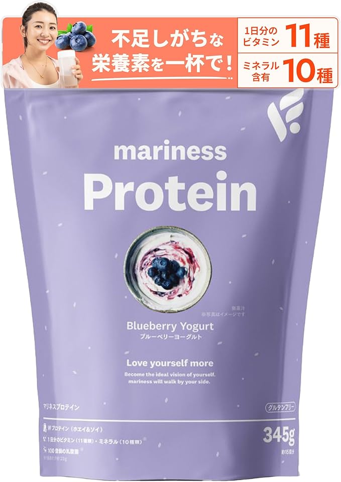 8位![]() ![]() mariness(マリネス)プロテイン | 14g (1食約23g) 約約60.8% ブルーベリー ヨーグルト味 | 345g=209.76g | 345g ¥3,480 | 16.59円 |