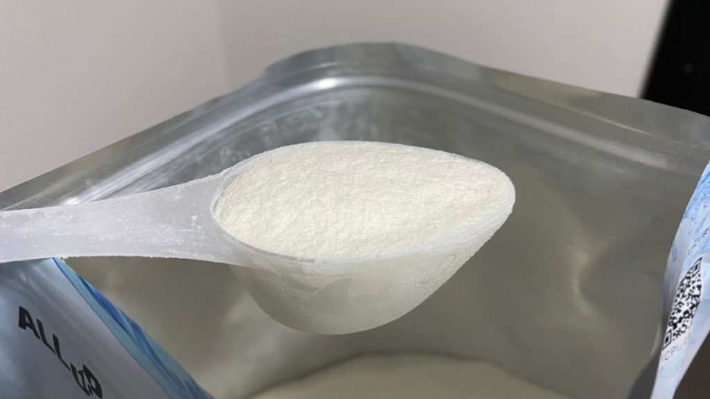 プロテインにおいて溶けやすさは重要ポイント。溶けにくい=ストレスに直結します。その点、ALLUP CPIプロテインは優秀。コラーゲンペプチドの分子量が小さいため粉は細かく、水にも溶けやすいです。