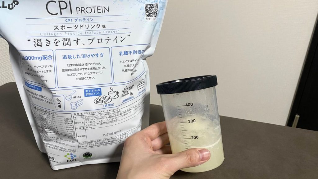 ALLUP CPIプロテインのスポーツドリンク風味を実際に飲んでみました!